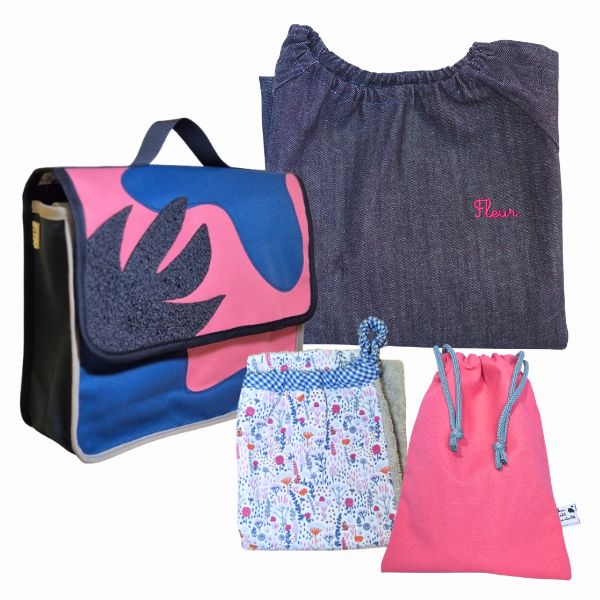 Pack 129 € https://www.cartable-enfant.com/product/kit-premiere-rentree-rose InStockUn kit complet et harmonieux pour accompagner les premiers jours à l’école maternelle. Cartable, blouse personnalisable et serviette assortie pour une rentrée douce et organisée.